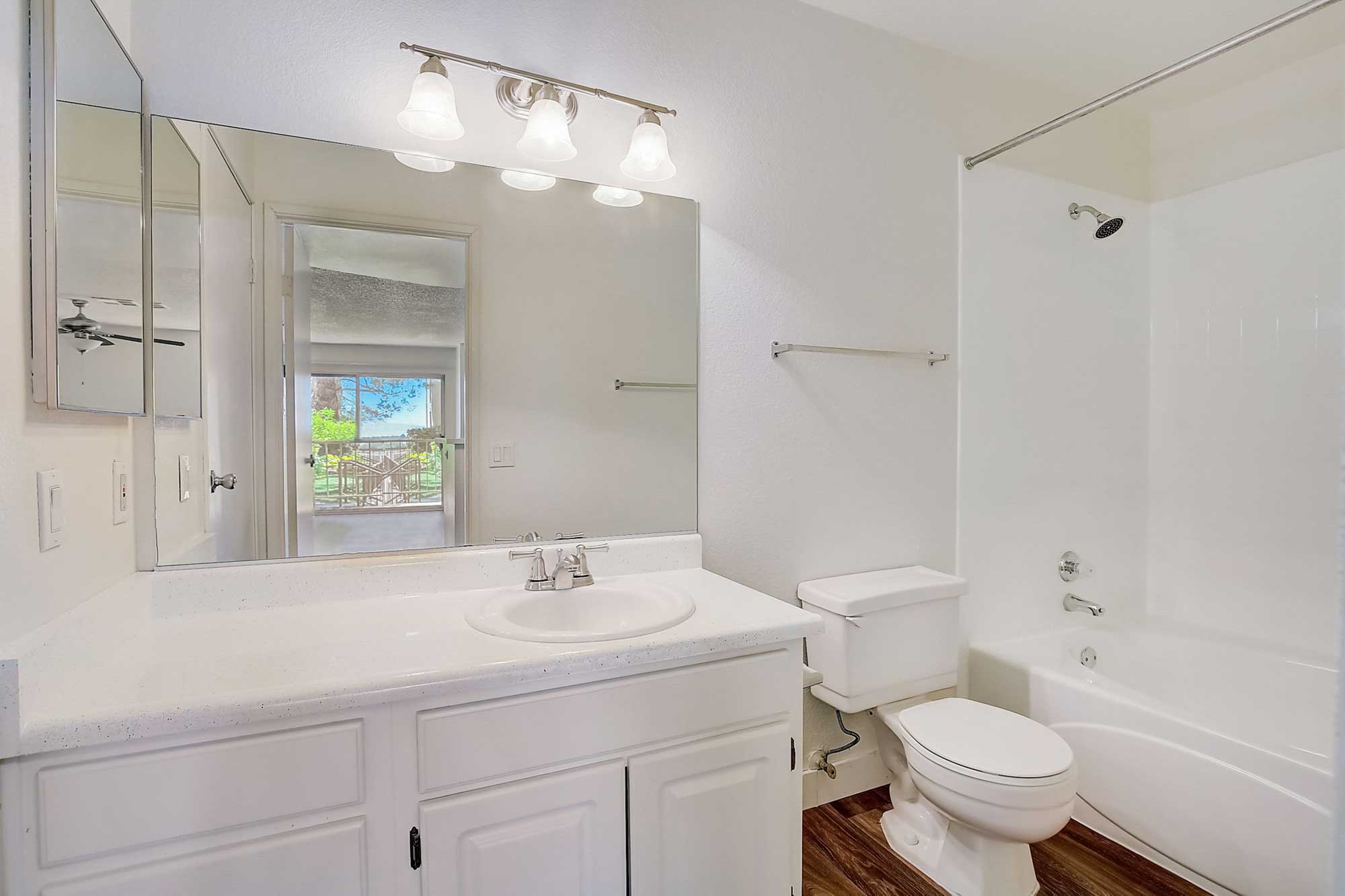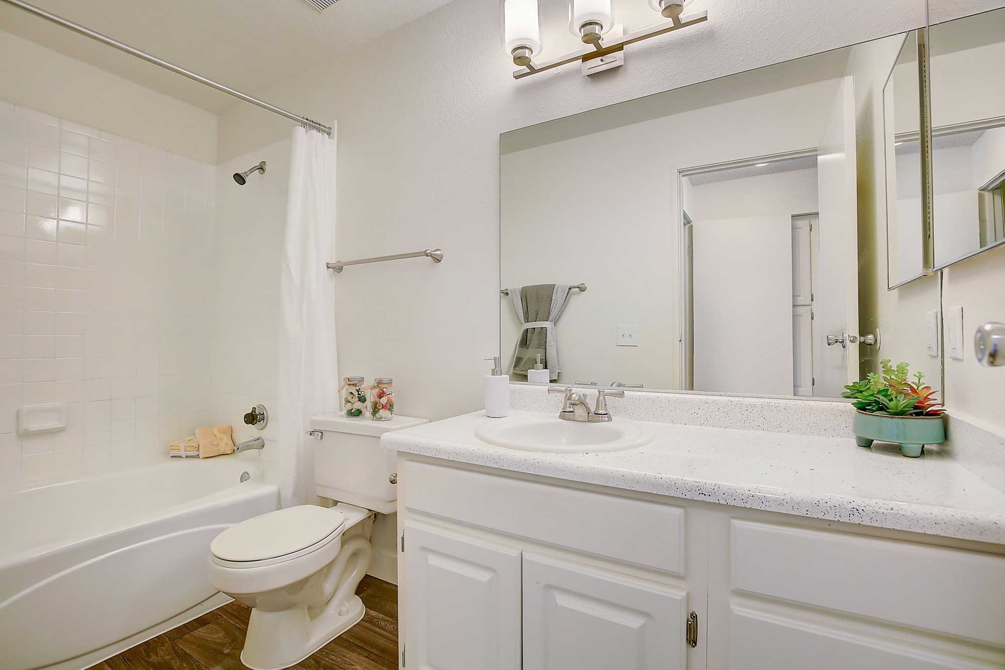 Pines Apartments are beautiful inside and out. Come home to a tucked away and nestled community, surrounded by lush landscaping, tall palm and pine trees, and biking and trail walkways. Mountain views.